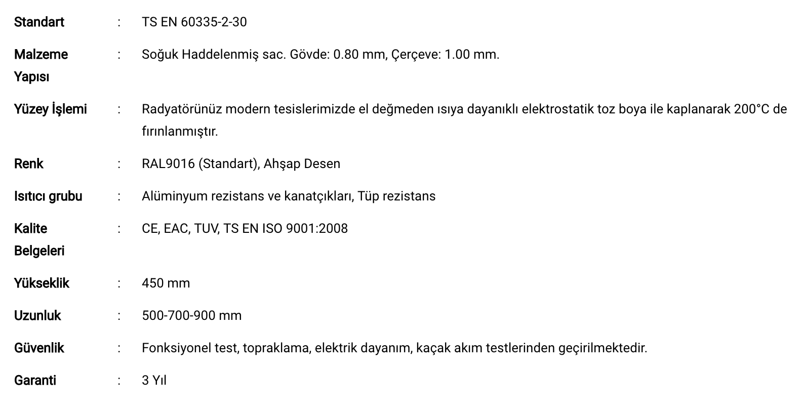 500 Watt Manuel Konvektör