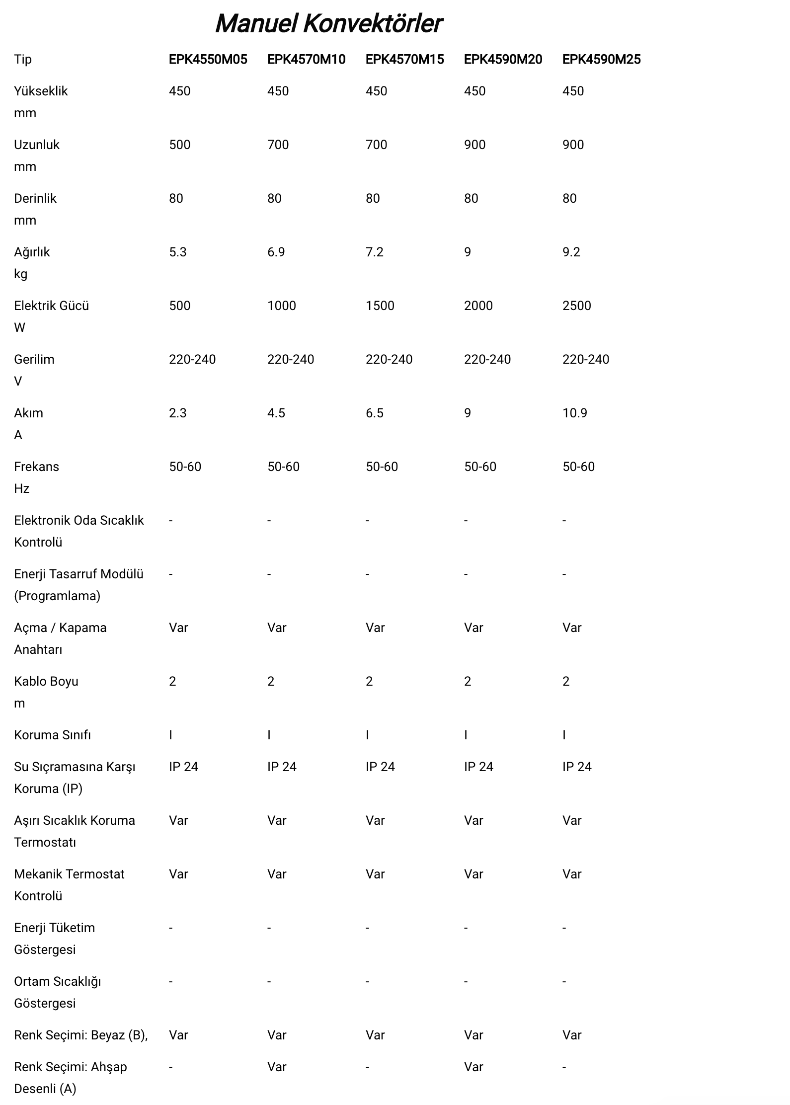 2500 Watt Manuel Konvektör
