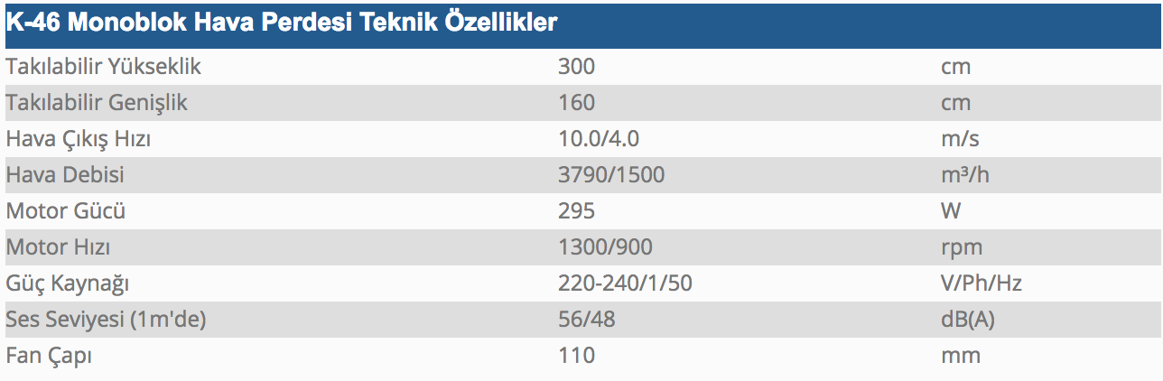 K-46 Monoblok Hava Perdesi