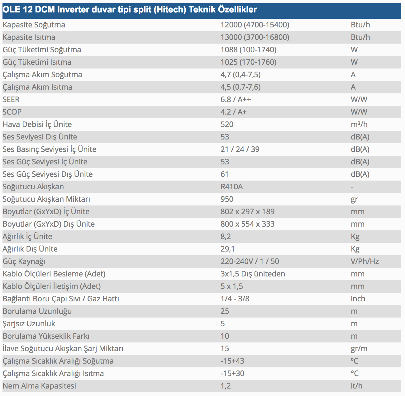 OLE-12DCM Inverter Duvar Tipi Split Klima