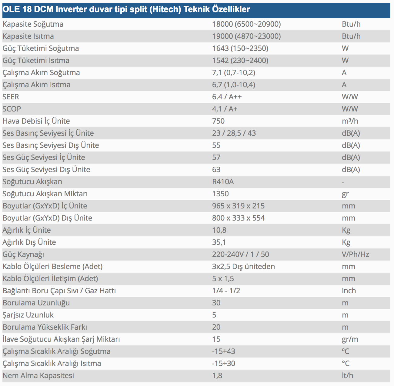 OLE-18DCM INVERTER DUVAR TİPİ SPLİT KLİMA