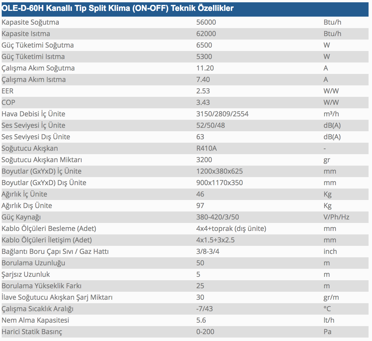 Yüksek enerji verimliliği yüksek borulama teknolojisi iç ünite Standart filtre standart kablolu kumandalı opsiyonel uzaktan kumandalı otomatik arıza gösterimi 200 pa harici statik basınç yüksek hava debili.