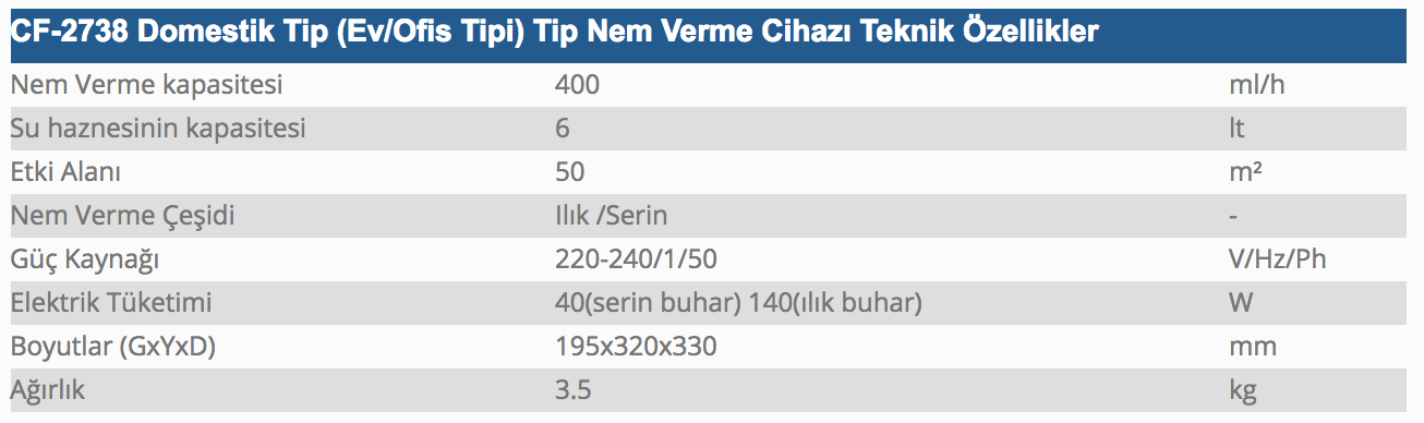 CF-2380 Domestik Tip (Ev/Ofis Tipi) Nem Verme Cihazı