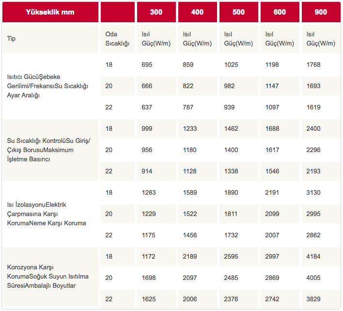 - 300, 400, 500, 600 ve 900 cm anma ölçülerine sahip, radyotörler, 40 cm ‘ den 160 cm ‘ ye kadar 10 ‘ar cm,160 cm ‘ den 300cm’ ye kadar 20’ şer cm artan uzunluklarda üretilmektedir.