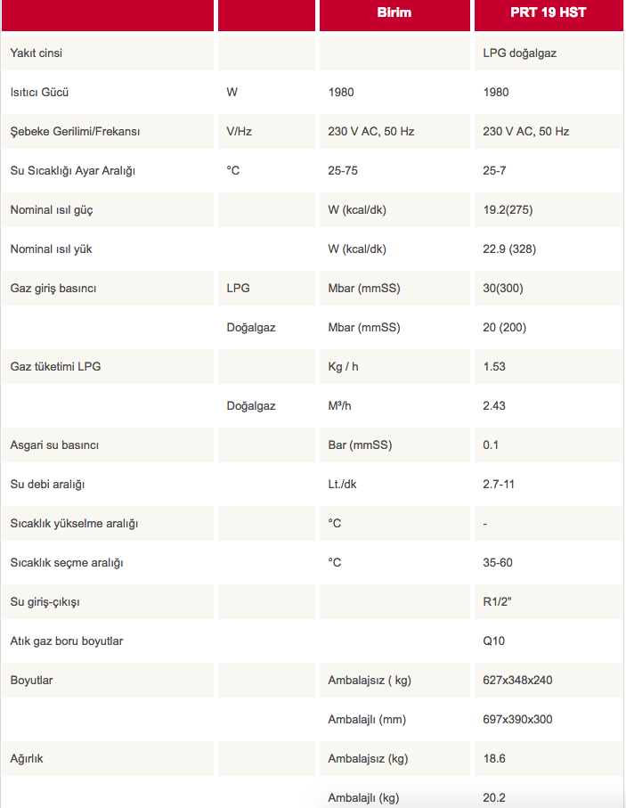 - 275 kcal/dk Isıtma Gücü (19,2kw güç)