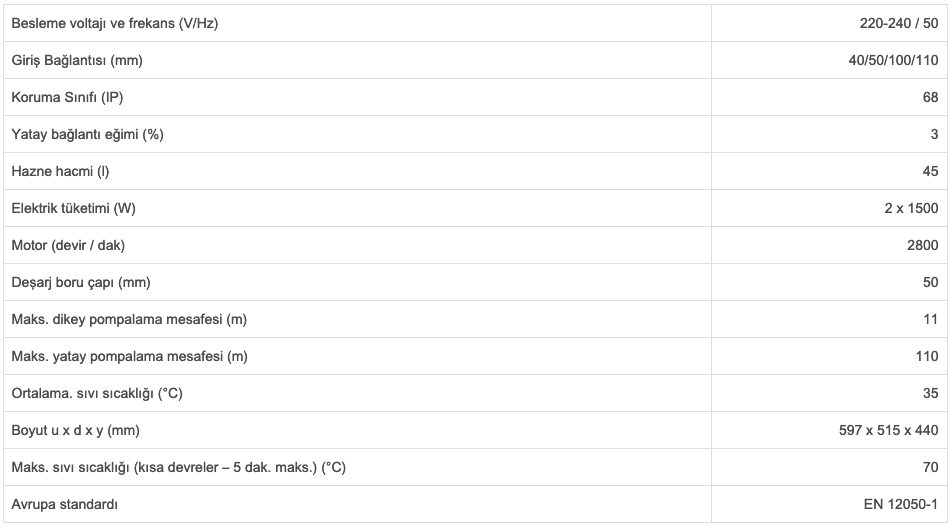 çamaşırhanenizden gelen atık suları tahliye edebilen bir pis su transfer